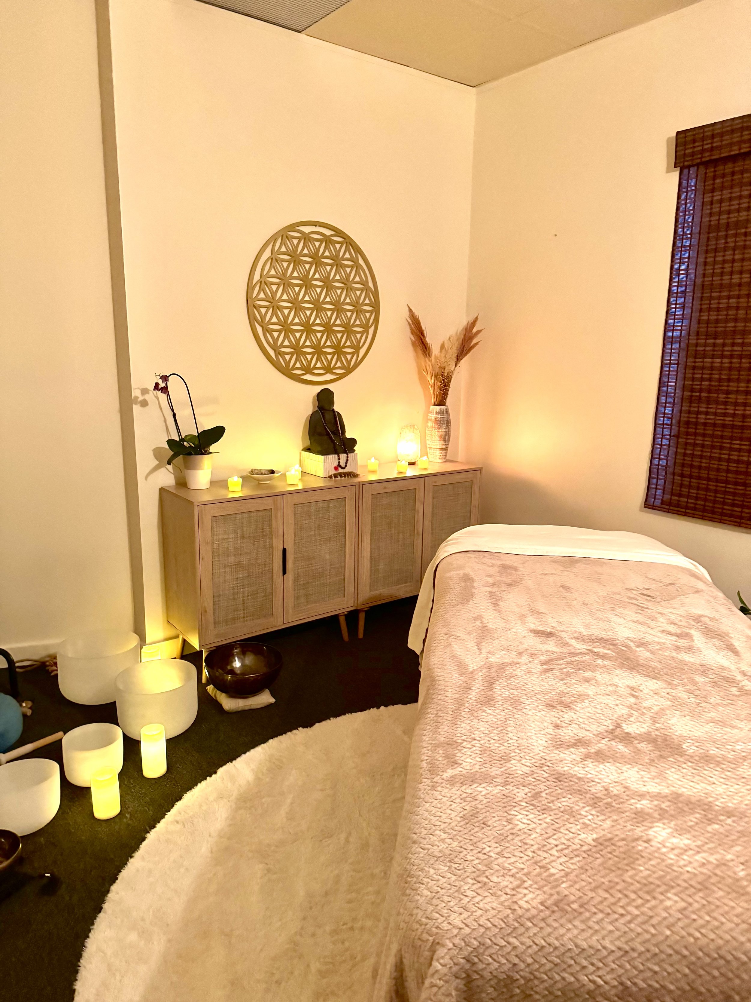 In my Studio, you will find an intimate healing space created for stillness and renewal. The room offers a grounded, nurturing atmosphere where you can exhale and simply be.